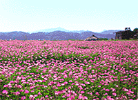 在这么广阔的范围内,春天自然有梅花和樱花,还有田野里的油菜花和紫云英花,或许农家还会种一些柿树、栗树、或者南瓜和向日葵什么的。