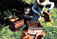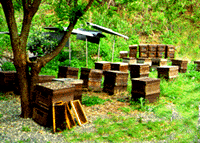 也就是说,活动区域半径在地图上尽量不重合的情况下,我们会在这里摆20箱,对面摆30箱,蜜源植物多的地方就摆上50箱。蜂箱就是这样分散在各地。 |