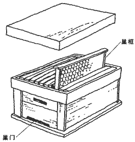 蜂箱是蜜蜂的家,也是养蜂活动中极其重要的工具。通常是木制的,上面有盖子,中间有8到10张左右的巢框。蜜蜂们就住在这里。蜂箱下面的缝隙叫做巢门,是蜜蜂们出入的地方。蜂箱有单箱和连箱之分。根据工蜂数量的不同,可以用单箱,或者在单箱上加一个继箱做成双层蜂箱,数目最多的时候还可以组成三重箱。