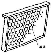 蜜蜂们实际筑巢的地方是巢框,它也是和蜂箱同样重要的工具。用带边角的材制作的木制框架上,横向连着3根铁丝,蜜蜂就是用身体中分泌出的蜂蜡在此筑巢的。为了让蜂箱规则化,在蜜蜂筑巢前应该事先铺设一个用蜂蜡作成的人工巢型——“巢础”。
