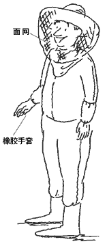 【工作衣物】光滑面料的白色连体衣是最佳选择。还要注意不要穿对蜜蜂有刺激作用的黑色衣物。 弹性衣物及工作手套类的面料容易挂住蜜蜂的脚而被刺,所以必需予以注意。 【帽子】需要带帽檐的帽子。 【面网】为了保护脸部不受侵犯用的“面网”是一张细格网。 【鞋子】以牛筋长靴制品为宜。 【手套】宜用厚厚的胶皮手套。 ![]() |