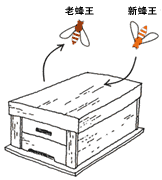 2.蜂王的更新换代 如果蜂王产卵状态不佳的话,蜂群整体群势就难以提高。所以尽可能每年更新一次蜂王。更新蜂王的最佳方法是,在蜜源植物开花期内除掉老蜂王,培育新蜂王。蜂王不在的情况下蜂箱内会出现很多王台。这时候要选择其中最大的一个同时除掉其他的。不久新蜂王就会诞生,并于大约10日后开始产卵。