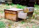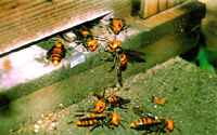 ●安装驱蜂器 在巢门前安装捕杀胡蜂的驱蜂器。驱蜂器看起来像一个筐,它是利用胡蜂侦察后在归途中会斜飞上天空的习性设置的,胡蜂一旦进入就出不去了。因为荷尔蒙的关系,只要抓住一只,其他胡蜂也会自投罗网的。所以只要设置了驱蜂器,即使我们一周只巡查一次,防范效果也是非凡的。