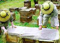 ●始自秋天的过冬准备 盂兰盆节后就不采蜜了,要开始贮存足够的蜂蜜过冬。此外,还要减少一些巢框,增加巢内蜜蜂居住密度,创造一个高热能的环境。