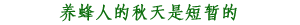 不仅仅是秋天,季节的变迁本来就很快。对于养蜂这一行来说一年的时间真的是很短暂。以至于我会想如果每一个季节的开花期都能变长一个星期就好了。 盂兰盆节时开花的樗叶花椒和随后开花的楤木、盐肤木的花期过去后,进入春天后蜜蜂们可采集的杂木林蜜也就差不多没有了。
