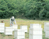 由于蜜蜂的数量增加,储存花蜜和产卵的地方减少了,蜜蜂就开始“分巢”进行繁殖。在培育新蜂王,蛹开始羽化之前,老蜂王和几万只蜜蜂一起迁出蜂箱。这叫做“分封”。这些蜜蜂停伫在街道两旁或院子里的树上形成蜂团,经常给人们带来麻烦,甚至有时还成了新闻报道的对象,想必很多人都曾看过。它们暂时聚集在树枝上,之后便飞出去寻找新的栖息地。养蜂业者必须费心照看好蜜蜂,以防止它们分巢。