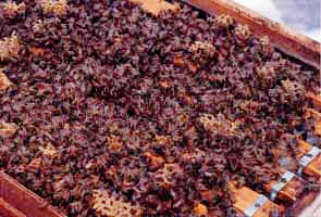 因此,要用煤气喷灯清洁蜂箱,巢框要用煤气熏蒸后清扫保管。这时候还必须对蜂箱受风吹雨打损伤的外侧进行涂层处理,以及对毁坏的地方进行修补。今年的工作结束的同时下一年的准备工作就又开始了。