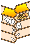 工蜂在巢房中哺育幼虫,贮藏蜂蜜和花粉,蜂巢形成9~14度左右的角度,以防止蜂蜜流出。蜜蜂的生态和蜂巢的结构真是让人吃惊,可以说是自然界的鬼斧神工。可见,先不说仍不为人熟知的蜜蜂世界,仅从蜂巢来看,就可知在自然创造性方面人类智慧是远不及它们的。蜜蜂作为具有优良社会性的昆虫,从比人类历史更悠久的过去一直生存至今、繁衍生息,并为我们带来了蜂蜜、蜂王浆、蜂胶、花粉以及蜂蜡等许许多多的恩惠。在新世纪初,在制作巢框的过程中,蜜蜂的创造性和不可思议之处让我们陷入深思。
