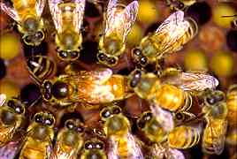 完成婚飞交尾后回到蜂巢的蜂王,由工蜂供给它蜂王浆。这样,蜂王的肚子慢慢胀大,最快可在大约2天后开始产卵,除夏天高温期或冬天严寒期外,在2~4年中它会每天都持续产卵。蜂王总是被大量的工蜂围着,而正是此时,她会分泌出可抑制工蜂产卵能力的特殊信息素。工蜂尽管是雌性,但却无法产卵,其原因就在于此。一旦蜂王因意外死亡,工蜂就会开始产卵,但因没有交尾而只能产无精卵,即雄蜂。