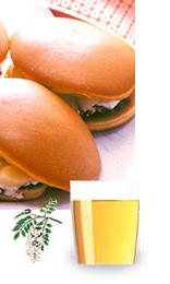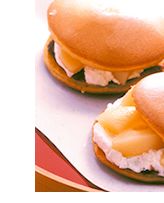 在2个甜饼之间夹入粗豆馅、蜜汁白桃。