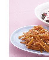 材料…供4人食用 胡萝卜…2根(300克) 香油…1大匙 蜂蜜…1大匙 料酒…2大匙 酱油…1大匙 芝麻…1大匙