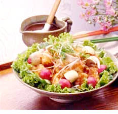 将2~5盛入铺有绿菜叶的盘内,