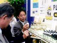 为了能够找到对今后产品开发有帮助的独特构思,我慢慢地边转边看。特别令我感兴趣的是各种各样的蜂蜡产品。我一直想在日本销售用蜂蜡制成的蜡笔,这样孩子们即使放进嘴里也很安全。从世界上来看,现在生产和销售蜂蜡蜡笔的公司只有德国和丹麦2家。我仔细参观了国际养蜂展,为了在生活中尽量增加一些对人体危害少的产品,我觉得蜜蜂是一个关键,利用蜜蜂生产物还有很多事情可做。