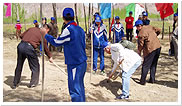 作为开展工程的第一年,从今年的3月20日至4月25日,与当地的下岗职工开展植树活动,共植树53.5万棵。种类为防砂防风林的短叶马尾松和白杨。