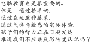 正如您所说。最使我感动的是蒙古家庭中难以割舍的亲情。在蒙古的一个蒙古包(帐篷)中父亲、母亲、他们有十几个孩子,还有爷爷、奶奶都生活在一起。本来,所谓家庭就是再生产“生命”和“物质”的场所。在蒙古,一般家庭都至少三代一起生活,大家齐心协力,用爱来支撑家庭,通过直接对大地的劳作,来延续自己的“生命”。而在日本,由于不断地城市化,一家三代在一起生活变得十分困难,家庭本来所拥有的功能也丧失了。