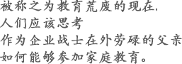 说到以前的家庭教育,一直是大书特书母亲的作用。我的家庭也是如此。不过,我认为有必要重新认识父亲存在的意义。不管父亲在外如何奔波劳碌,如果在家庭中父亲的存在意义消失,那么对父亲和孩子来说都无法说是生活幸福。